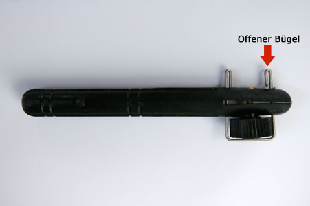 Beim Matchman ist darauf zu achten, dass sich der offene Bügel an der kurzen Seite ( wie in der Abbildung links dargestellt ) befindet. Sollte das nicht der Fall sein, muss die Schraube komplett geöffnet und der Bügel entsprechend umgesteckt werden. |