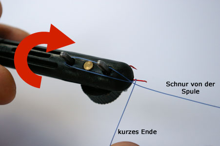 An der Schnur (von der Spule) ziehen, bis der Knoten sitzt. |